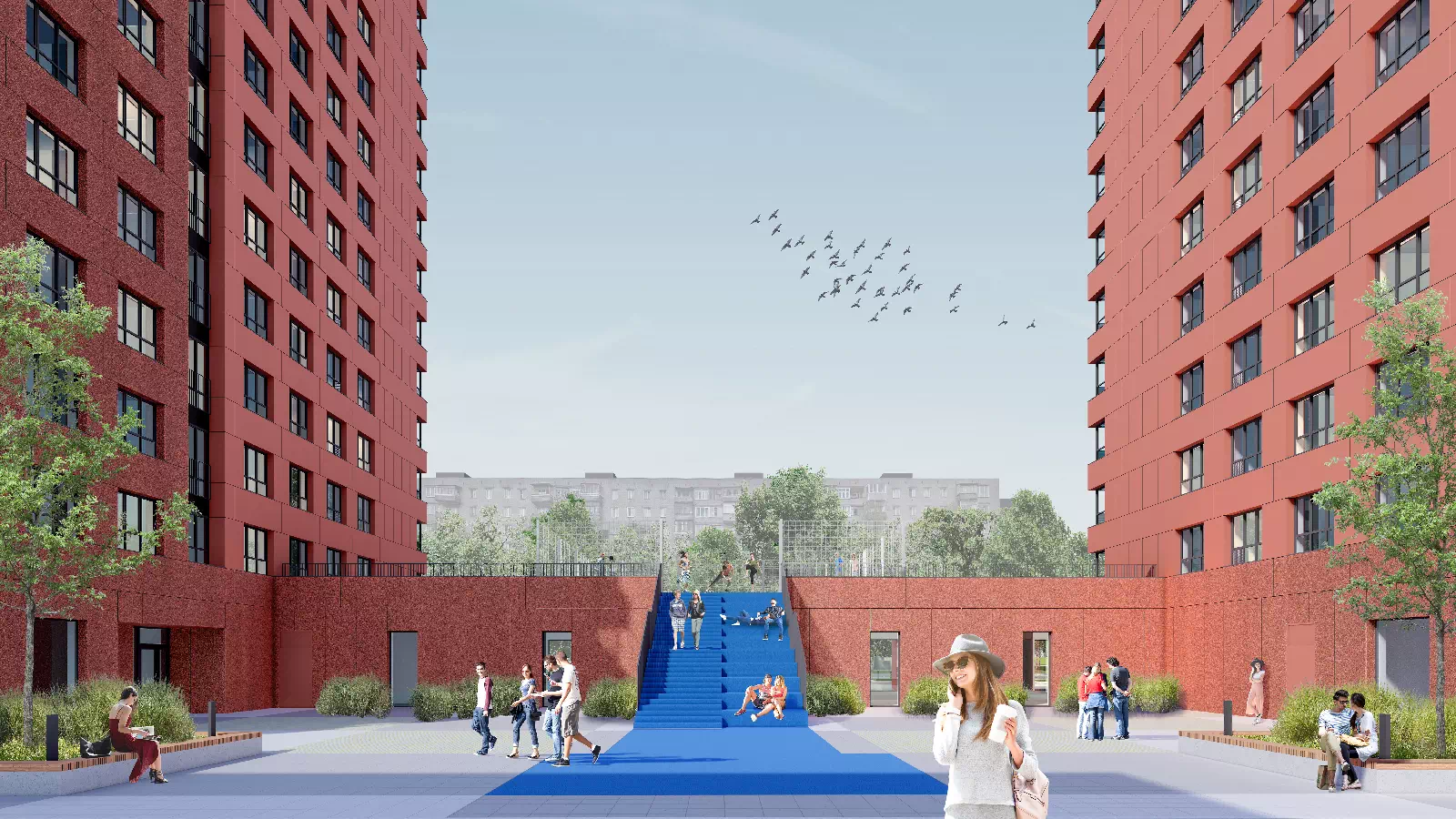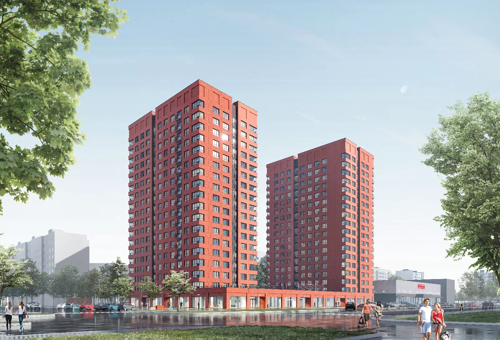В окружающем районе есть всё необходимое для комфортной жизни. Поблизости четыре детских сада, школа, поликлиника, кафе и магазины. В шаговой доступности расположены гипермаркеты Лента, METRO, благоустроенный парк Судостроителей, Ярославский аквапарк и фитнес-клуб Loft Fitness.