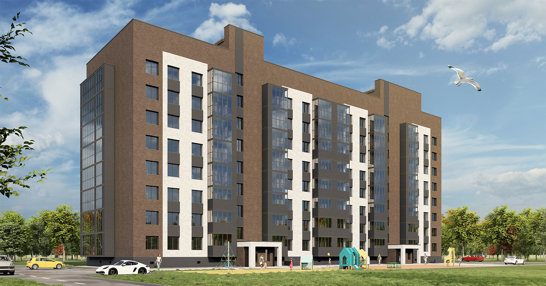 «Волга парк» расположен в 15 минутах езды от центра Ярославля, в уютном Фрунзенском районе на правом берегу Волги. Проект включает 18 жилых корпусов, 3 детских сада и 2 школы.