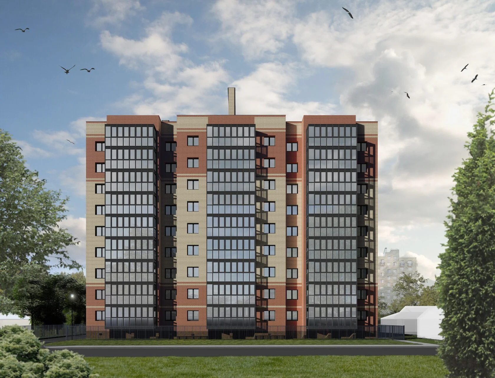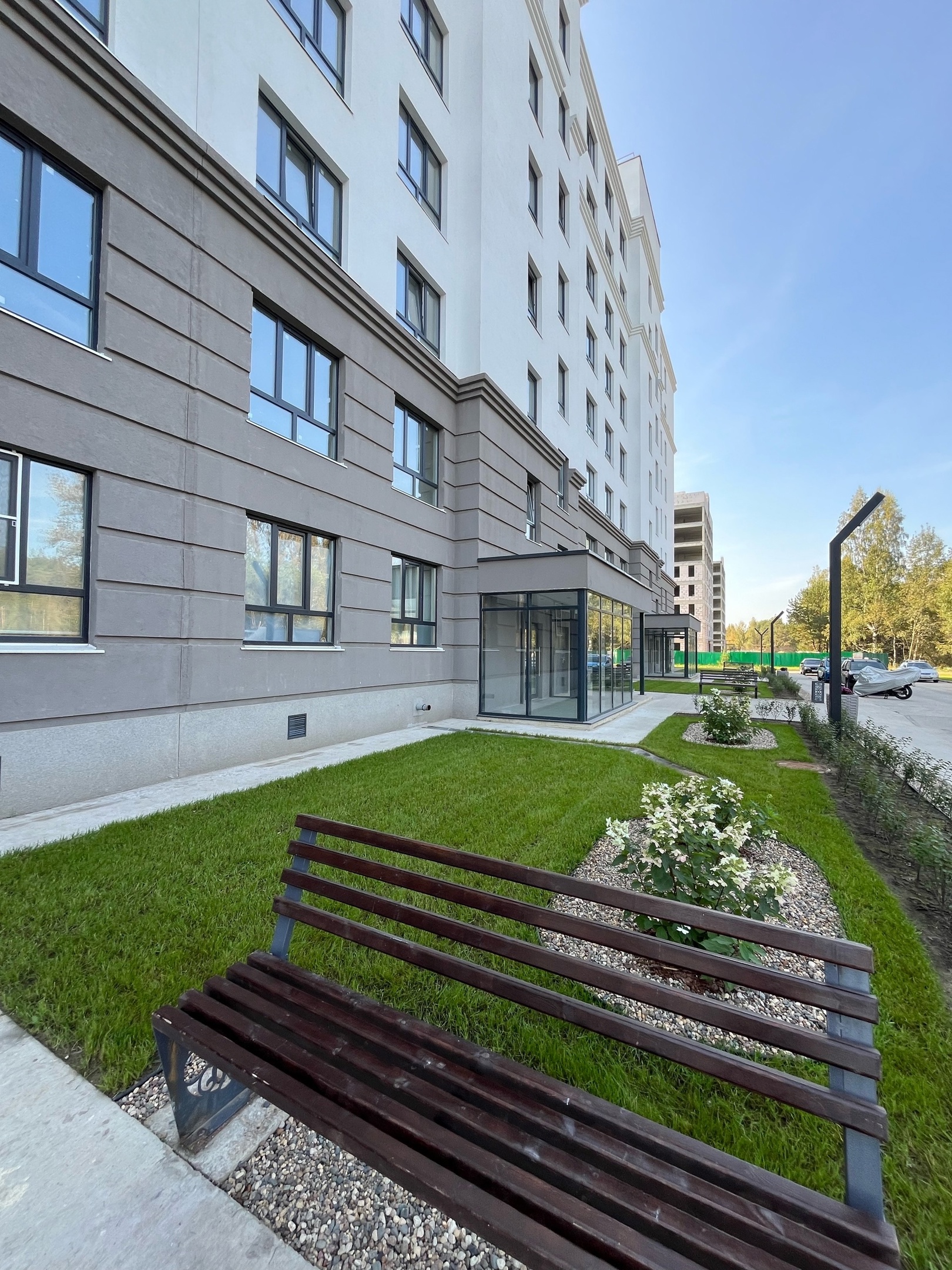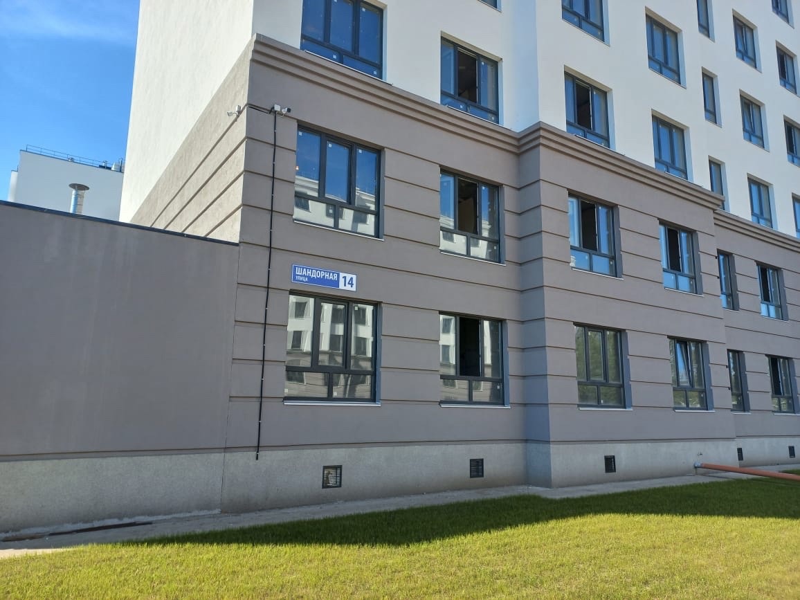 Квартиры передаются с полной отделкой: на полу ламинат, стены обои под покраску, натяжные потолки, санузел — пол и стены в керамической плитке, вся сантехника, межкомнатные двери, входная металлическая дверь, балкон/лоджия с остеклением.