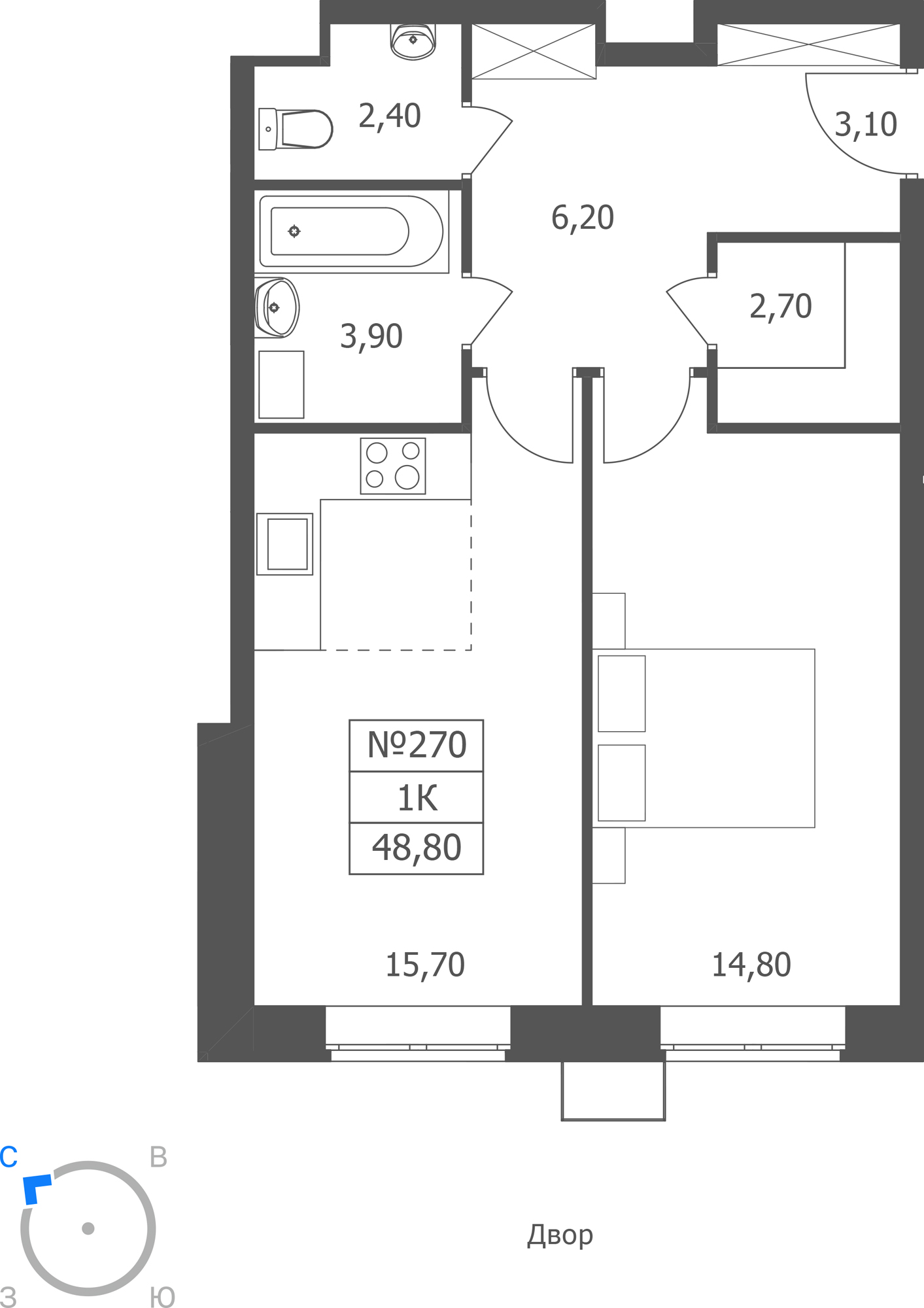 Купить 1к квартиру 48 м² в ЖК ЭРА