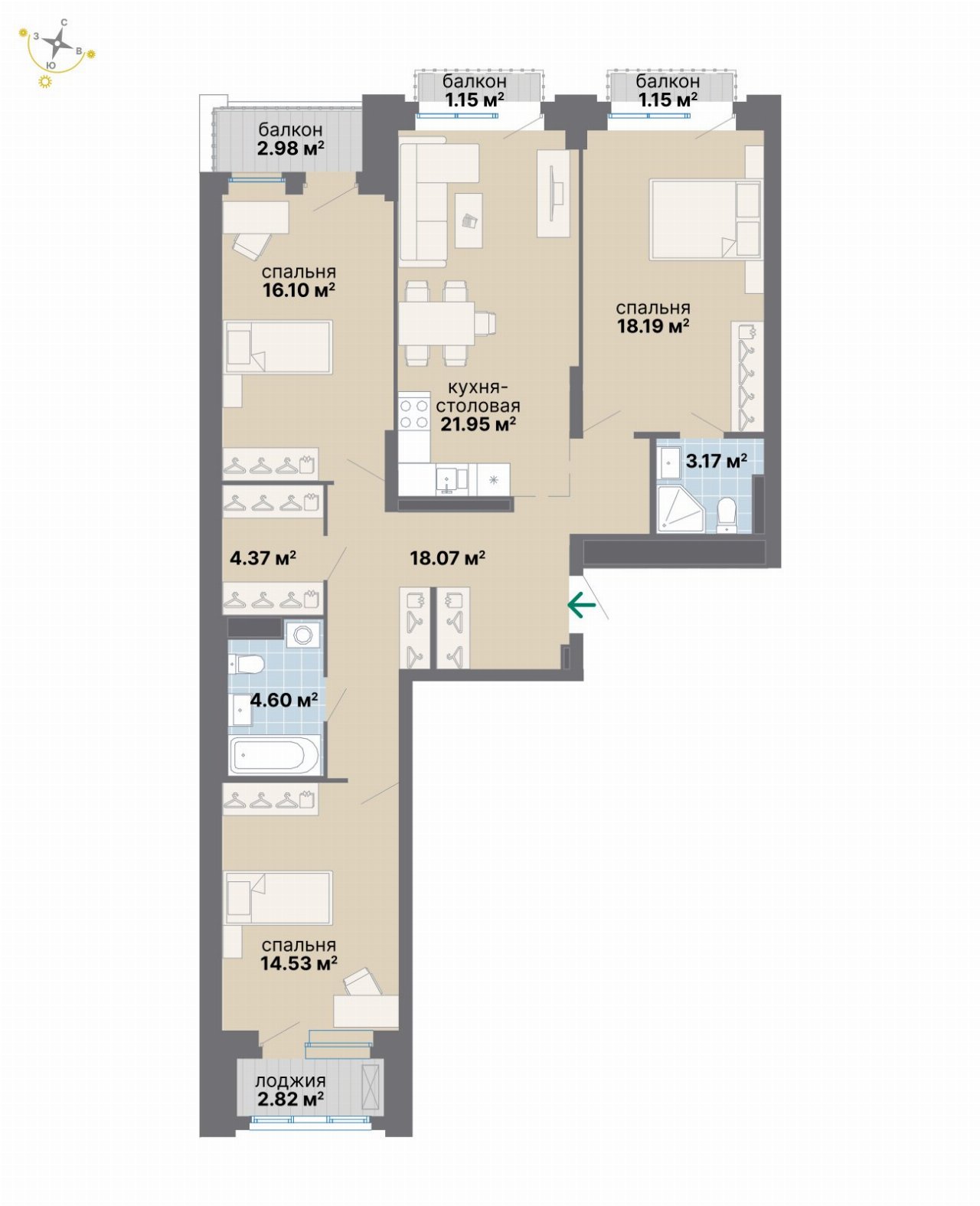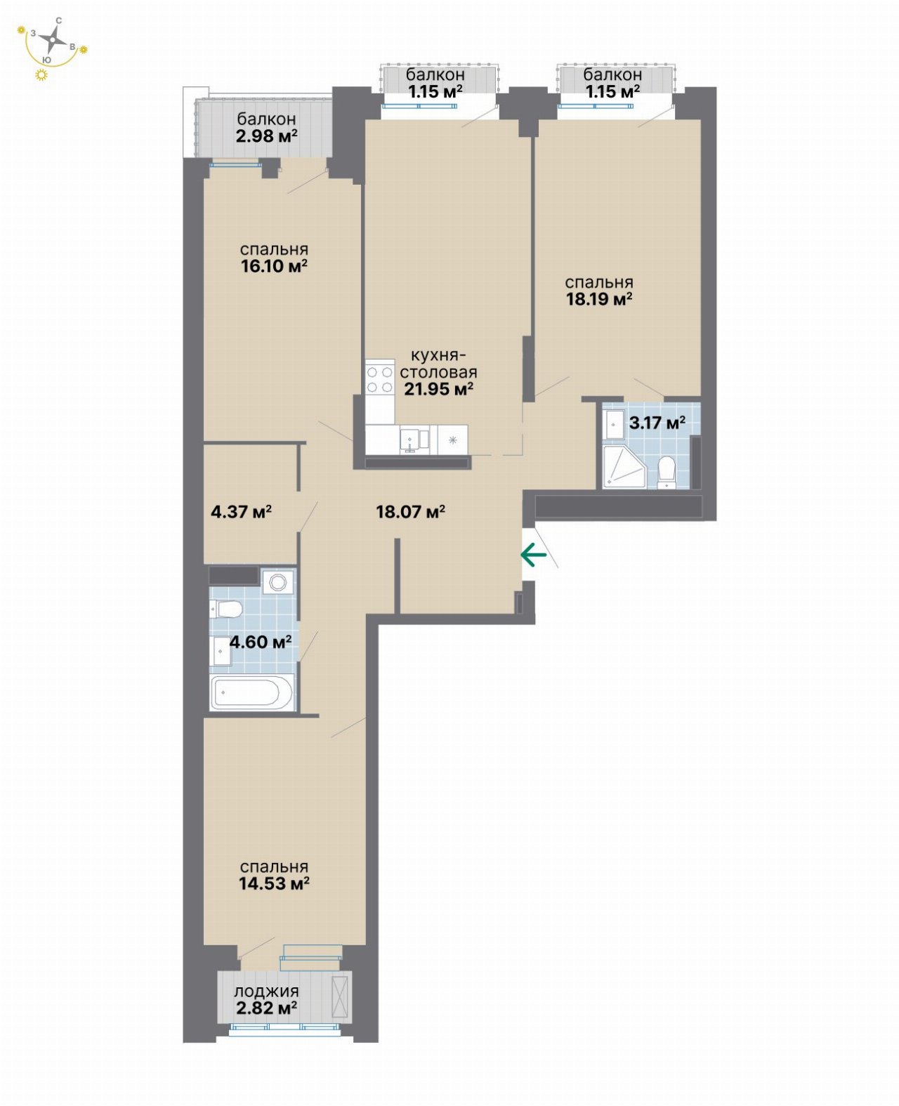 Купить 3к квартиру 96 м² в ЖК ЭРА